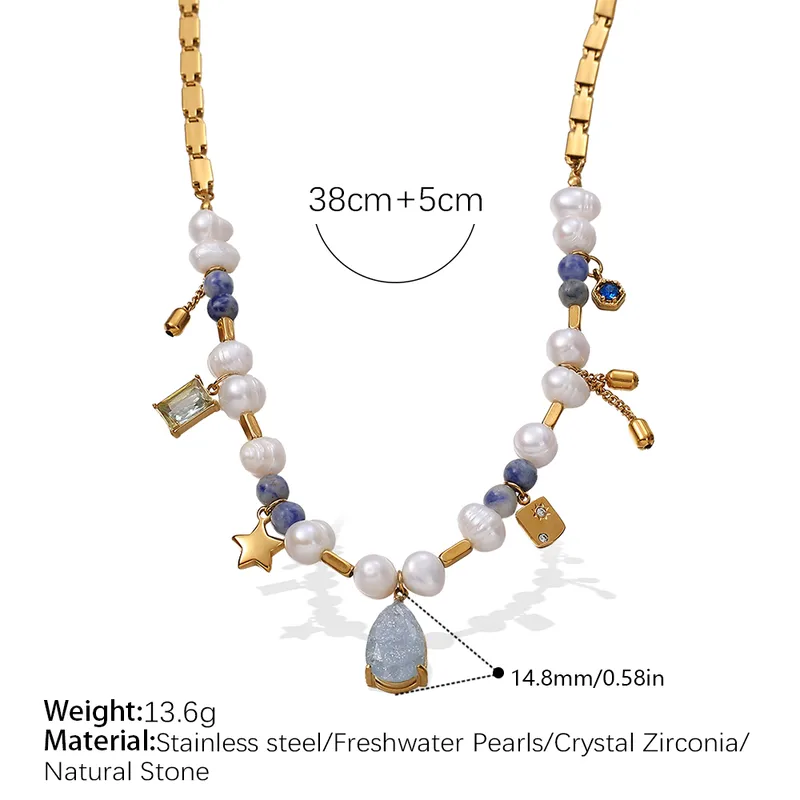 Glamour Lujoso Reina Geométrico Acero Inoxidable 304 Piedra Natural Perlas De Agua Dulce Mujeres Cadena Con Cuentas.