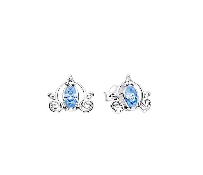 Para las amantes de las princesas, hermosos aretes hechos en plata 925 en forma de carroza con circonio azul. Tiernos, femeninos.